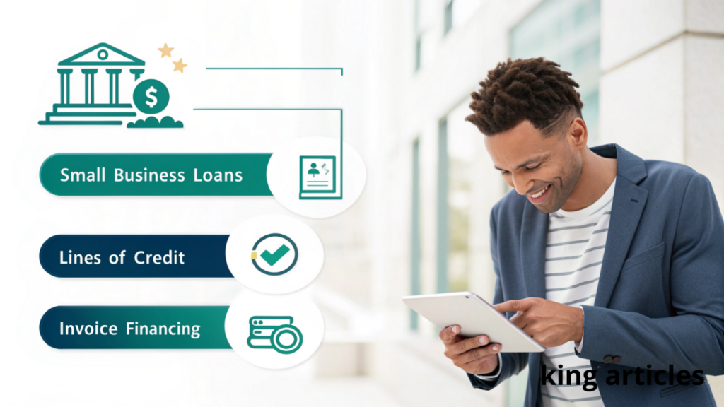 You can choose revolving lines of credit, term loans, equipment finance, invoice factoring, revenue-based advances, microloans, and business credit cards. Each product targets different goals—short-term cash needs, asset purchases, or long-term capital—so match the product to the use.